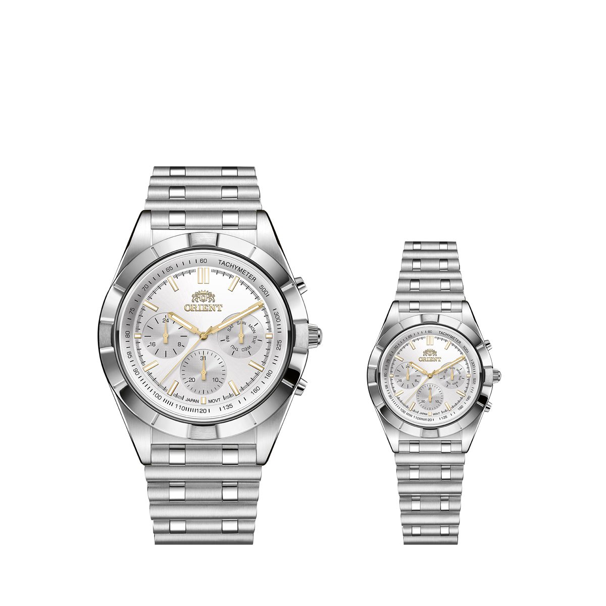 The Orient Watch OR.J-1152-G/L is the ultimate expression of shared elegance and exceptional craftsmanship. This sophisticated set includes a men’s model (G) and a women’s model (L), both made from high-grade stainless steel with a polished finish and solid-link bracelets. Their distinctive design details and carefully styled bezels create a harmonious pairing, perfect for couples who appreciate matching refinement.